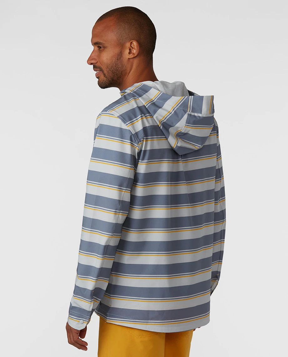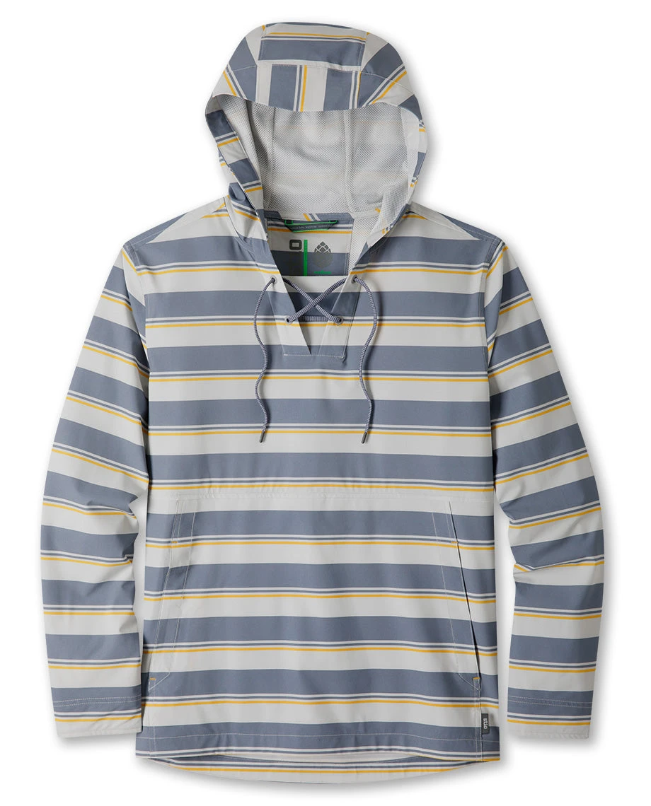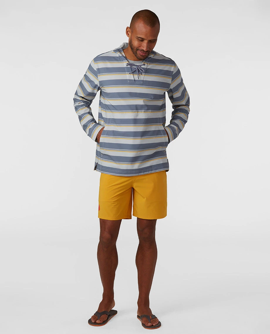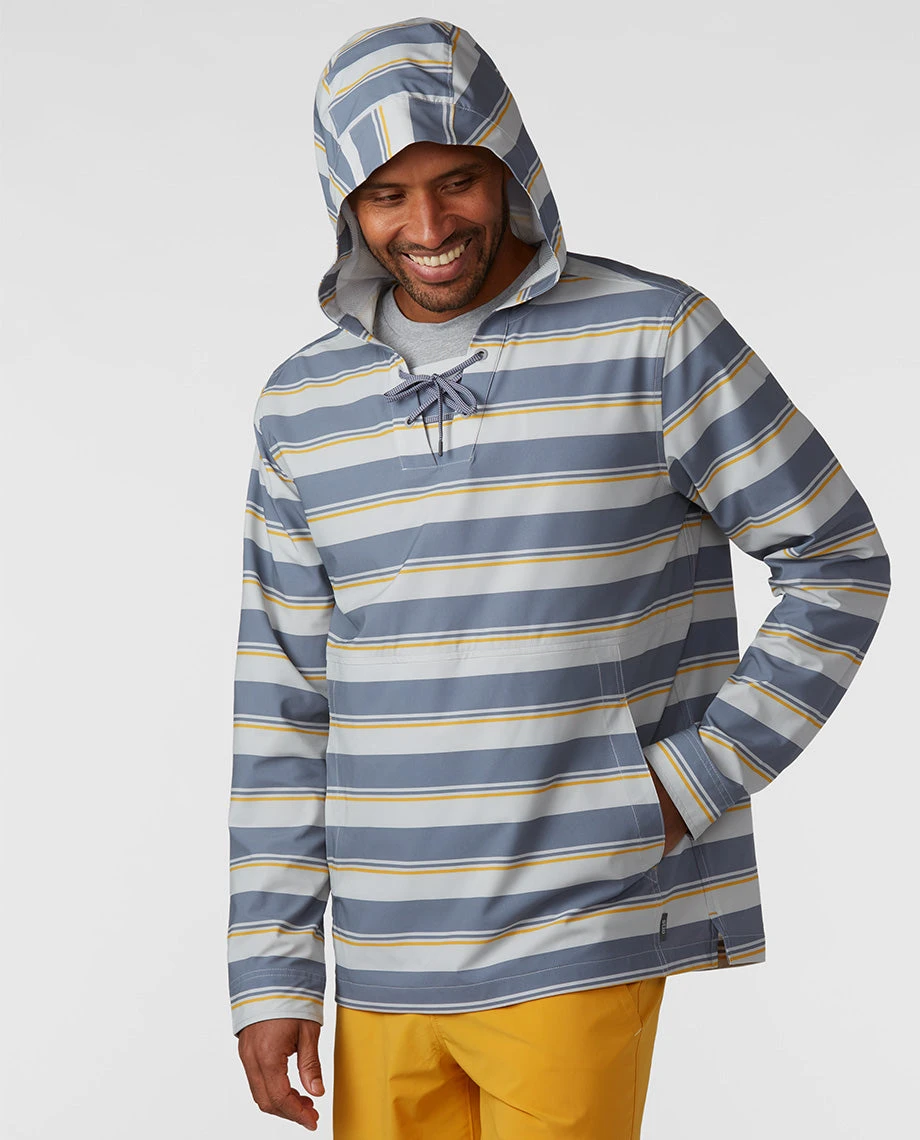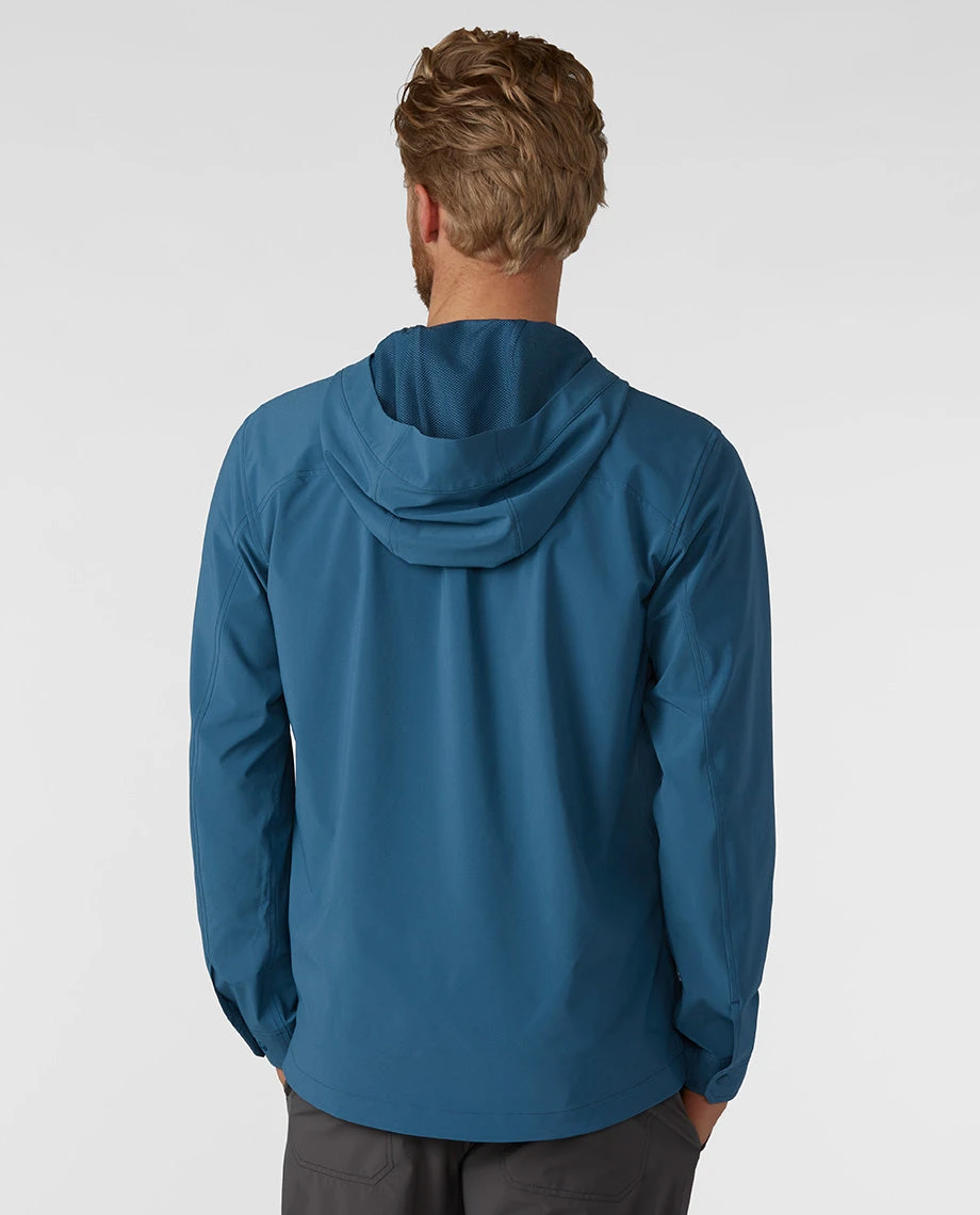 Inspired by Baja surf hoodies, our alpine lake and Western river evolution pairs UPF 50+ protection, four-way-stretch and a water-resistant, quick-dry finish. Tailor-made for all-day drifts, glaciated climbing or July days at the lake, it blocks overexposure with a fixed sunshade hood, a front brim and a lace-up front placket. Two-way cuffs stay put rolled or pushed up, while a combo of interior mesh and a side-slit vent keep it cool. Hands hang comfortably in the kangaroo pocket.